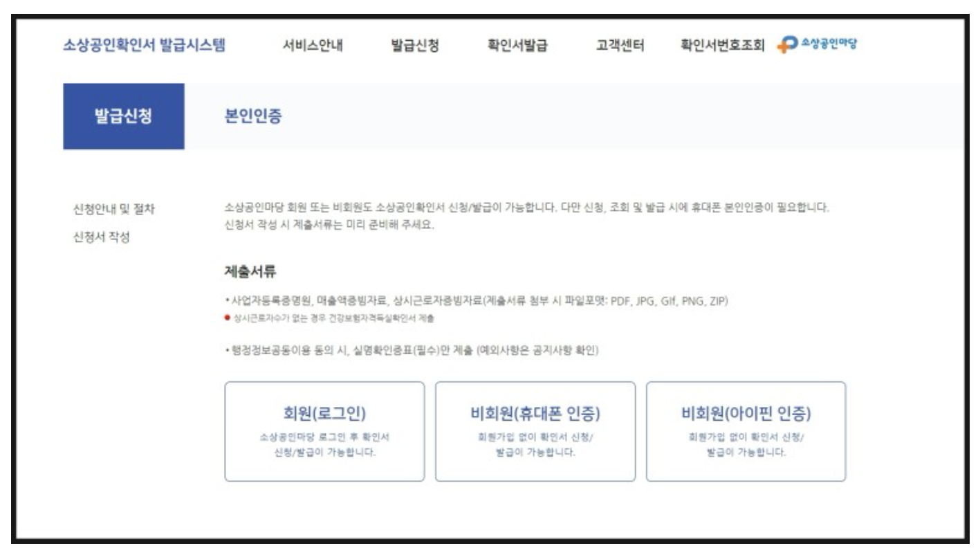 검색창에 '소상공인확인서 발급시스템'을 검색해서 들어간다.