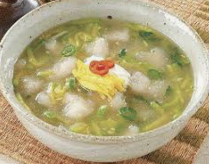 - 육수 끓이다가 반죽을 작게 떼어 넣음 (옹심이 모양)