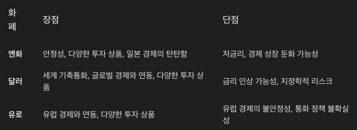 - 엔화 예금: 상대적으로 안정적인 수익을 추구하는 투자자들에게 적합합니다.