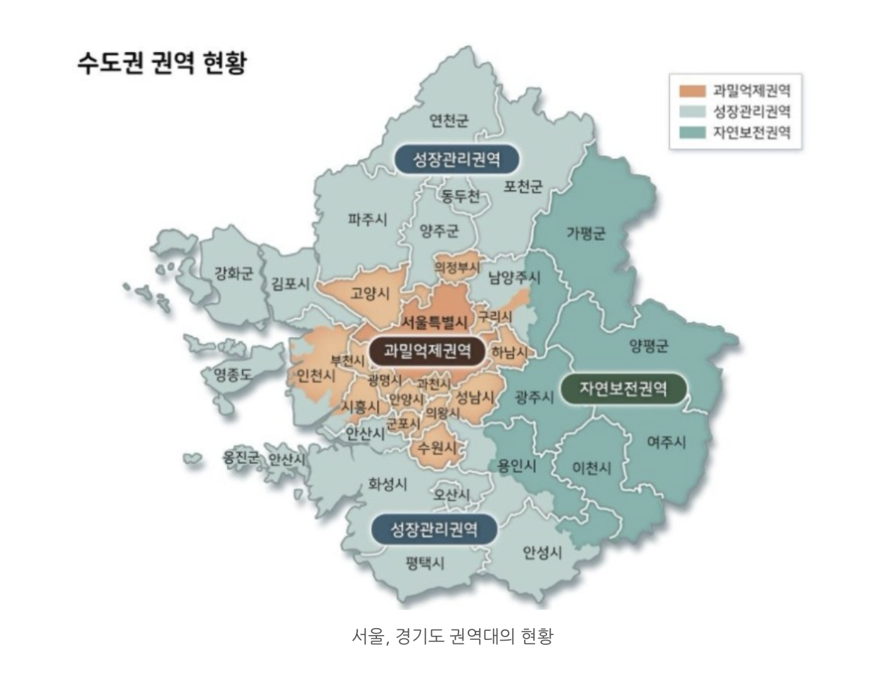 사진은 과밀억제권역, 성장관리권역, 자연보전권역 3가지로 권역을 분류하고 있다.